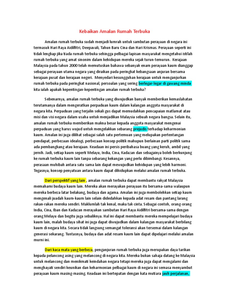 Doc Karangan Cemerlang Spm Kebaikan Amalan Rumah Terbuka Najat Ruhi Academia Edu